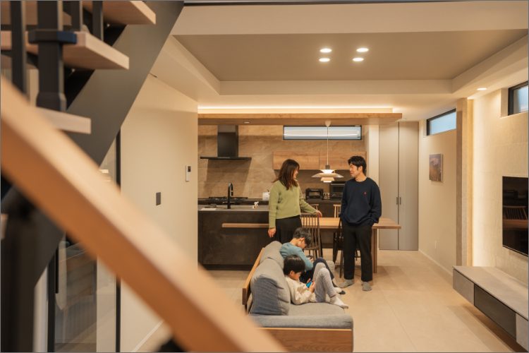 キッチンを起点に家全体の空間構成を考えた住まいで、デザイン性だけでなく、日々の過ごしやすさや家族の距離感まで見据えながら、奥様主導で進められた家づくりには、随所に明確な判断軸がありました。