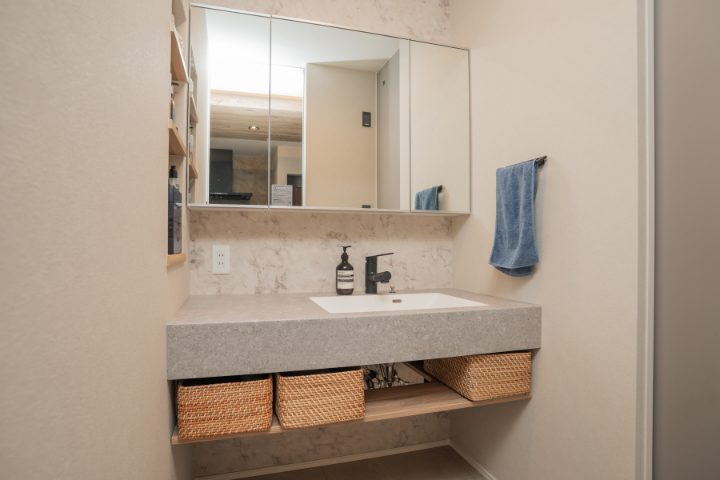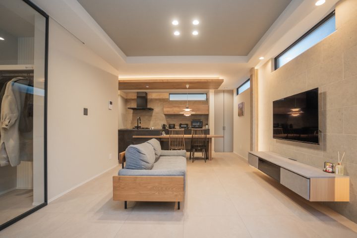土地購入から計画を進め、素材感と和モダンの世界観を住まい全体で表現することを軸に設計を行った。