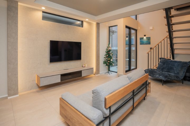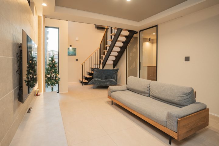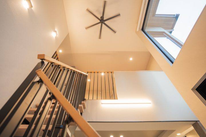 暮らしの中心となるLDKは、リビング階段を採用することで上下階のつながりを