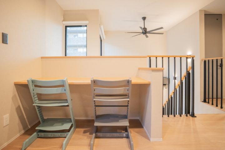 また、二階ホールには勉強や読書に集中できるスペースを設け、主寝室内の書斎から