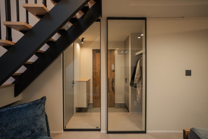 LDKの扉にはガラス扉を用い、視線の抜けと光の広がりを確保することで、